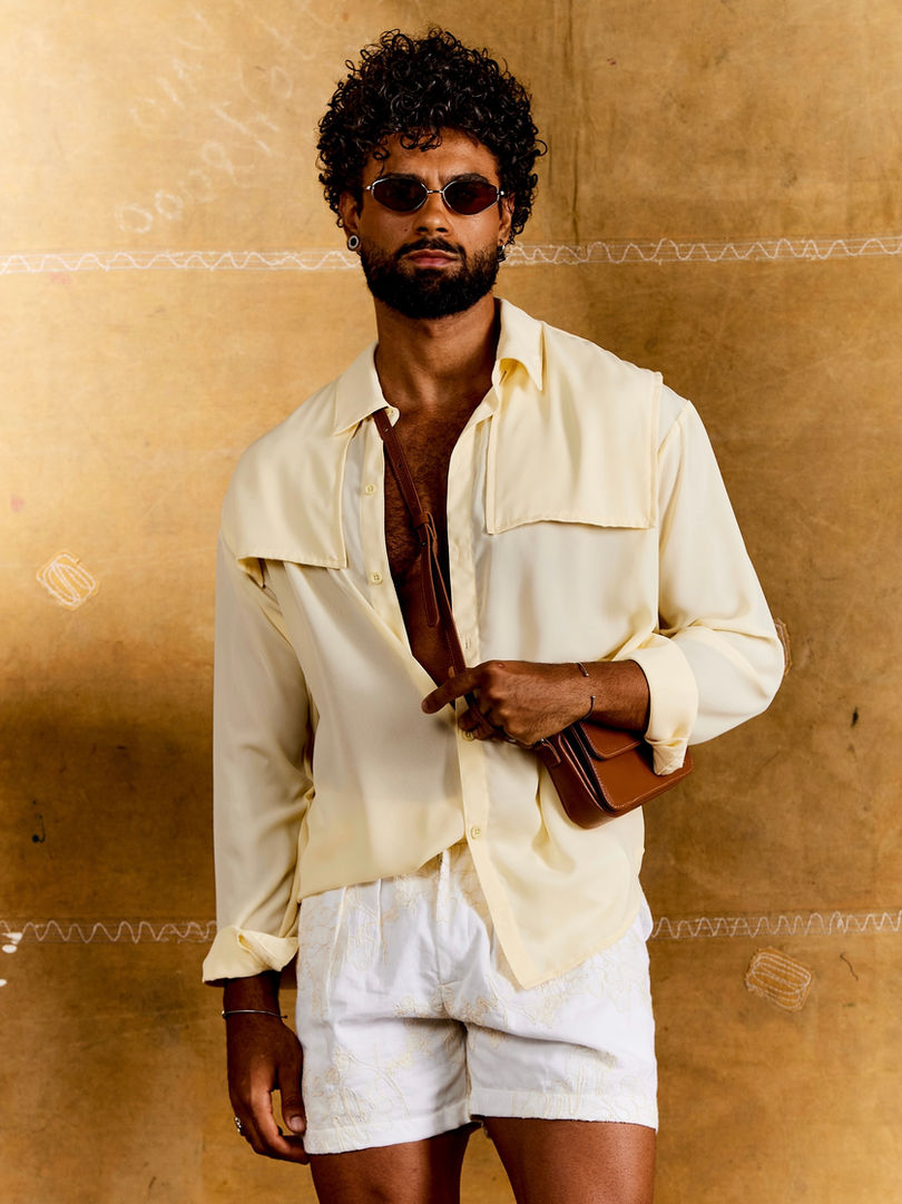 Camisa masculina Mirage em chiffon leve e fluido.