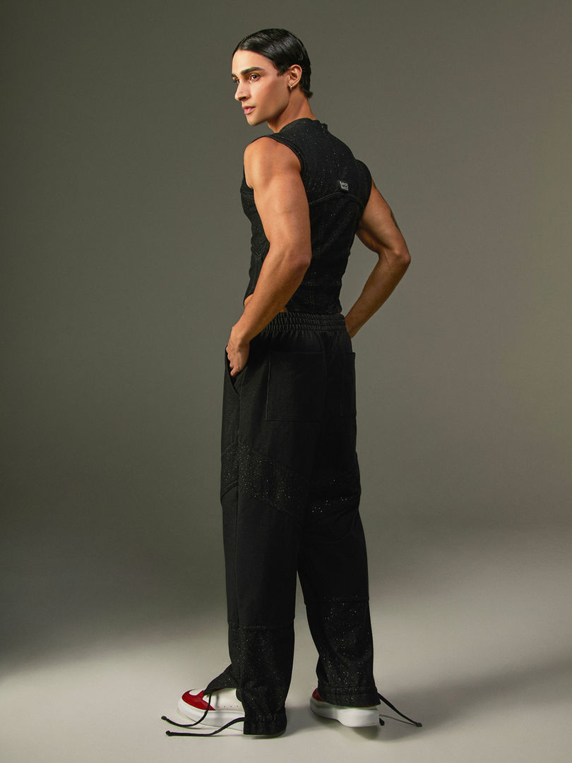 Perfeito para compor looks ousados, casuais fashionistas e produções noturnas, o Cropped Gliterry Masculino pode ser combinado com calças de alfaiataria moderna, jeans ou peças oversized, criando visuais impactantes e exclusivos.